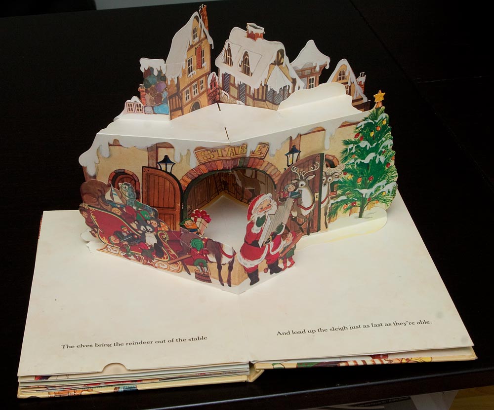 So I have this book… my Dad gave it to me in 1979. It’s a Christmas book about Santa’s workshop. I treasure this book. I keep it in a box and it only comes out once a year for about 2 weeks. Thing is, this is one of those pop-up books with flaps and tabs and things to pull and tug . I remember playing with it, I can almost recite it and it’s a Huge part of my personal heritage. My kids now have that link to my past and we can enjoy it together.