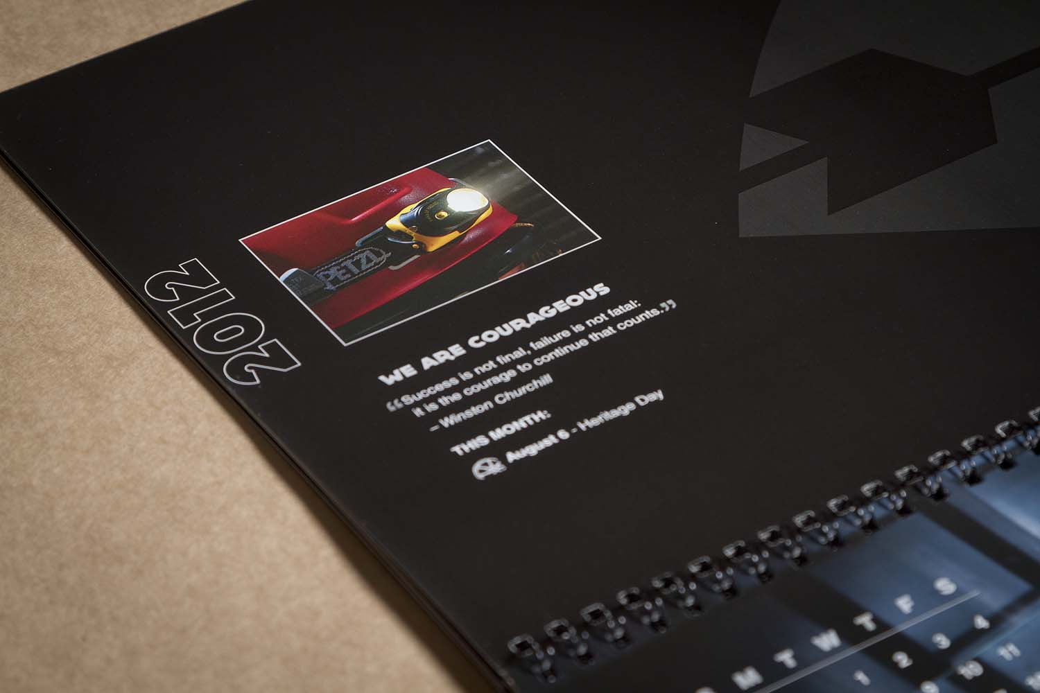 Directing the photography on this calendar was a major highlight of 2011. We concepted, planned and assited Photek in shooting this calendar. The outdoor training photo alone had 20 man-hours of planning and execution. But more than just technically complex, this calendar is one people will hang just to look at some for the exciting photos. Bring on 2012!
