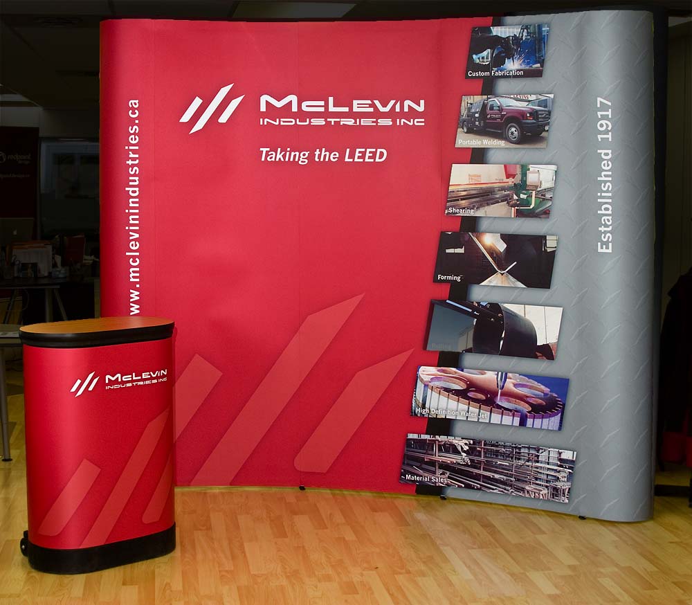 We also created a stunning tradshow display for McLevin Industries, a 9 foot pop-up with a full set of branded graphic panels that matches the established look of their new brand.