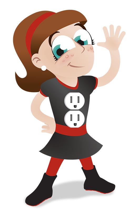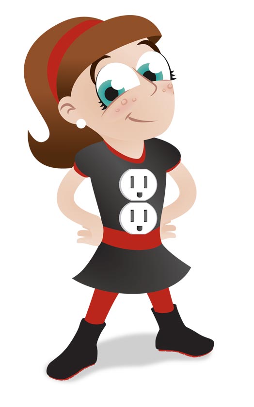 EQUS is north America’s largest member owned electricity provider. We illustrated the electricity safety spokesperson, Sally Socket – as a child, she has an easier time teaching children how to be safe. In addition, she's a superhero—notice the super suit and the sockets on her body. This is indeed no ordinary girl!