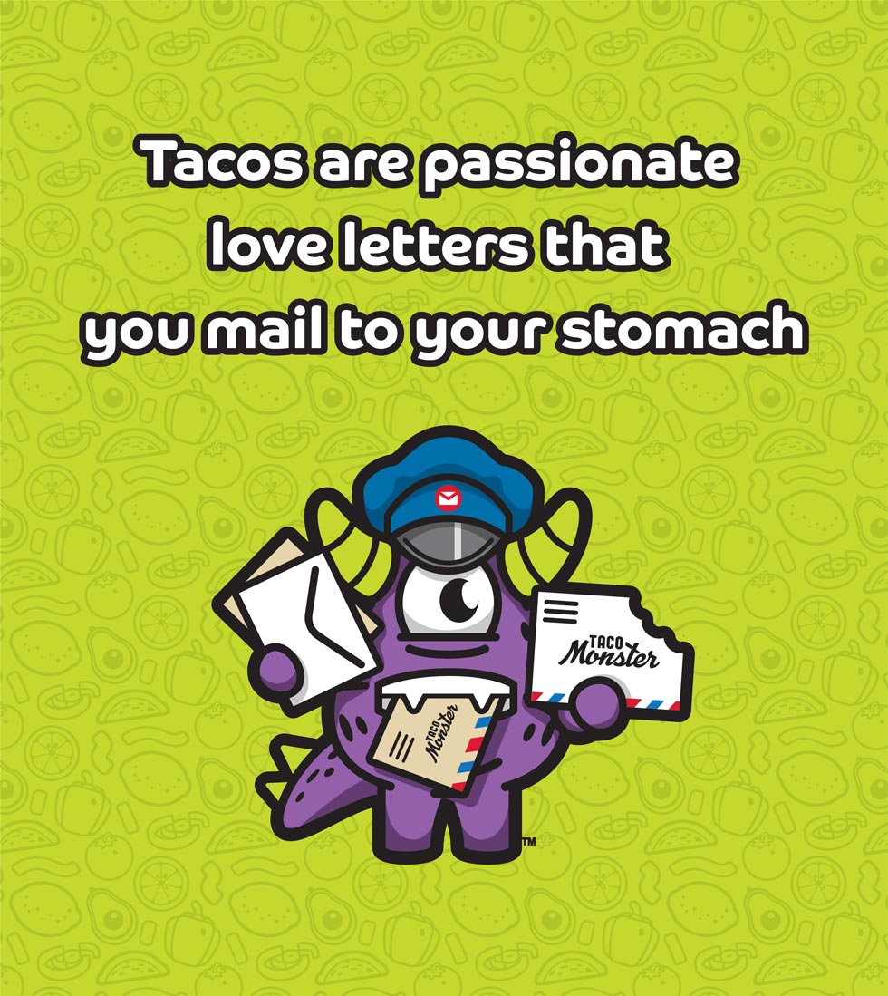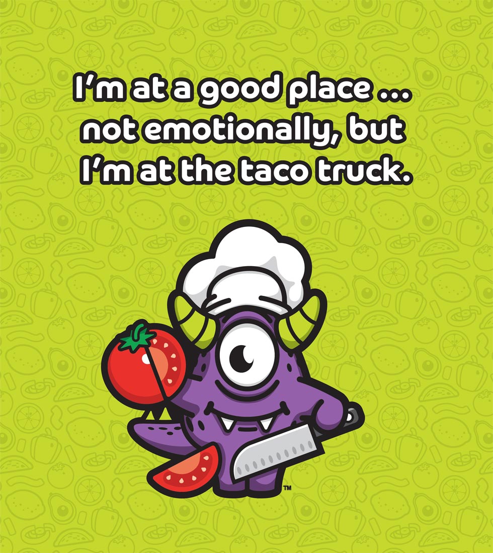 The ever expanding Taco Monster Universe has become vast, even in a short time with a multitude of poses, one liners, and potential. It a testimony to how much fun a brand can be if you let it live out its potential, but also to how much work fun it is!