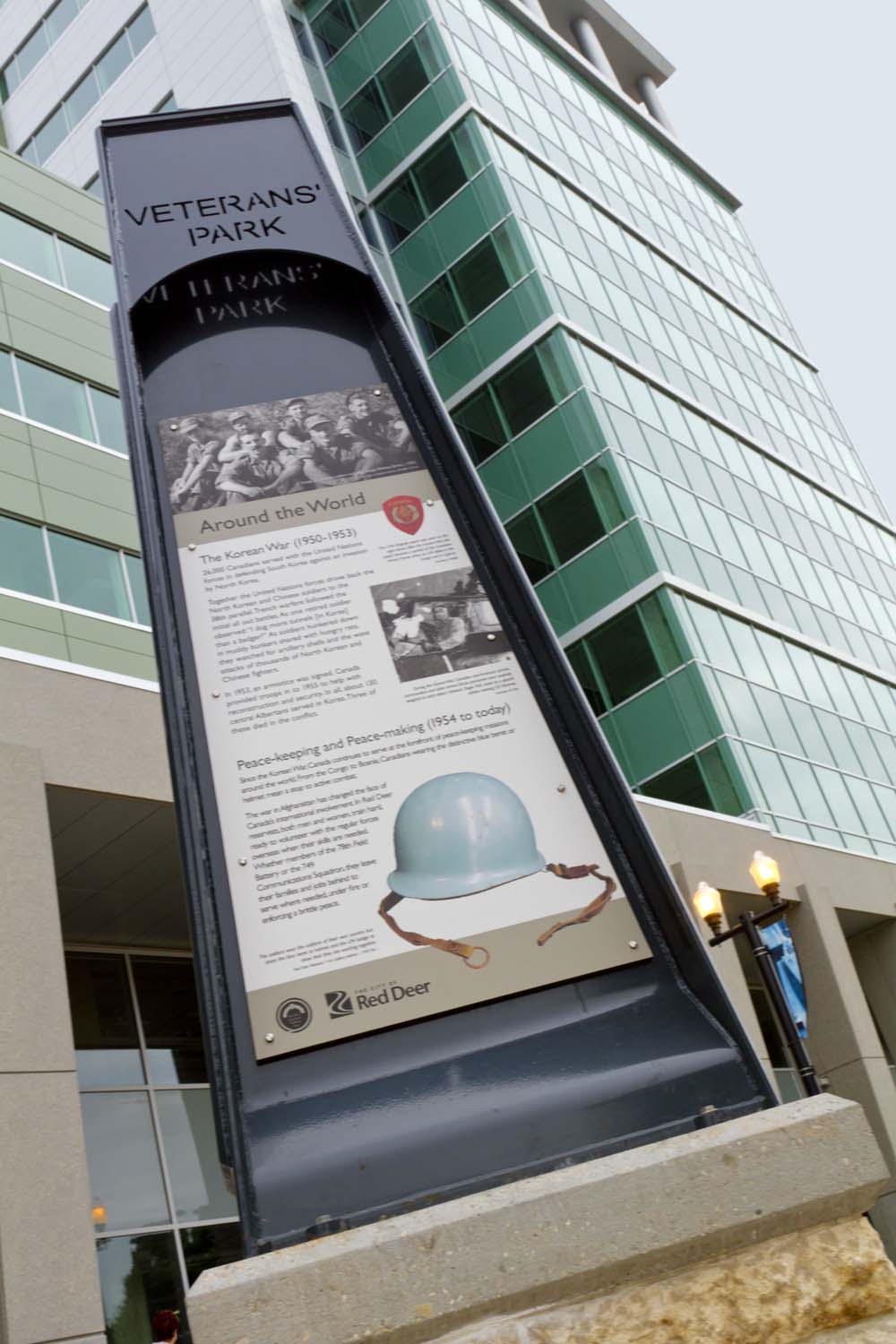 We were honoured to be selected to design the interpretive sign panels for the 2010-11 renovation of Red Deer’s Verteran's Park. The black steel columns were pre-installed and we designed the interpretive signs that bolted inside them.